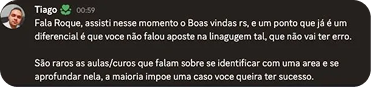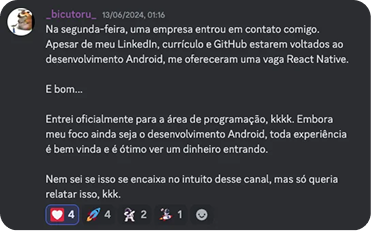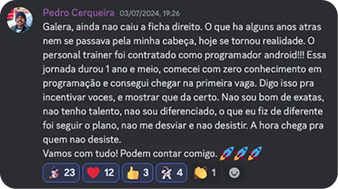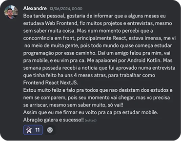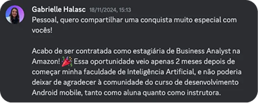 Networking real, dúvidas respondidas e contato com outros alunos no mesmo nível que você.